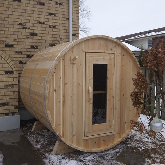 Serenity MP Outdoor Traditional Barrel Sauna Overview The Serenity MP Outdoor Barrel Sauna, part of the Canadian Timber Collection by Dundalk LeisureCraft, is expertly handcrafted from Eastern White Cedar—a wood prized for its light coloring, attractive...Regular price From $7,417.50Regular price From $7,417.50 -